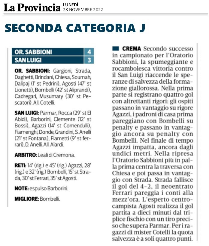Oratorio Sabbioni - San Luigi del 27 novembre 2022